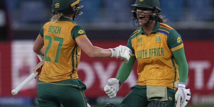 DUBAI, â¢United Arab Emirates (AP) — In a stunning upset at the ‌Women’s T20 World​ Cup â¢semifinal on â¤Thursday, South Africa ‌defeated reigning champions Australia by eight wickets, securing a spot in their second consecutive final. This†match marked ‌a significant turnaround from the previous year’s final held in Cape Town, as ​South⣠Africa successfully chased down Australia’s⣠score of 134-5‌ with 16 deliveries remaining. The six-time champions from Australia had recently clinched three titles â£in a row.